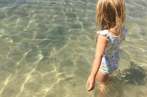 Använd vettiga flythjälpmedel (vi använde hajfenor eller flytväst vilket fungerade toppen) men undvik att göra barnen orörliga genom för mycket grejor. Många fransmän sätter på flytarmband på barnen och sätter dem sedan i en flytring, vilket är totalt livsfarligt om barnen välter – då har de ingen chans att komma upp. Använd sunt förnuft och bada med barnen på bra stränder.