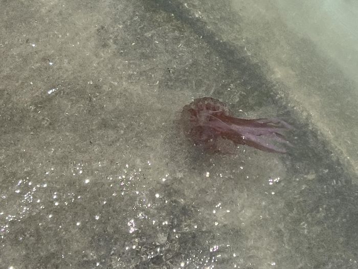 Vi har främst sett maneter vid lite grundare stränder – ofta runt Esterel, ibland i Antibes, men nästan aldrig i Nice. De kan vara svåra att se, men när man väl sett en ser man ofta fler. Det kan vara smart att fråga andra badande om de sett ”meduse” men oavsett svar behöver man hålla ögonen öppna.