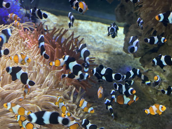 De olika akvarierna är fantastiska och bjuder på djur av olika sorter, färger och slag. Fiskar, anemoner, sjöstjärnor, maneter och mycket annat.
