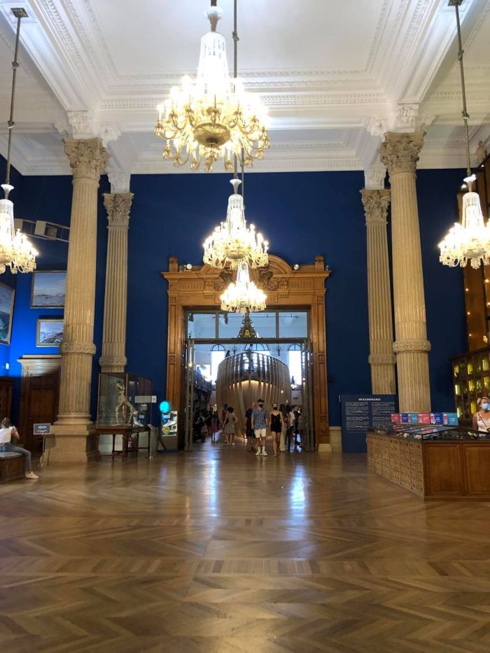 I nedervåningen finns akvariet – eller akvarierna, för att vara korrekt. Här finns både ett par stora akvarium med hajar och andra fiskar, till otaliga små akvarium med allehanda havsdjur. Man hittar fiskar i alla möjliga storlekar, former och färger, sjöstjärnor, anemoner, sjöhästar, maneter och mycket, mycket mer. Vid varje akvarium finns information på franska, engelska och italienska.