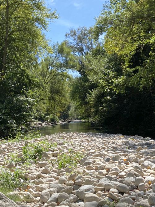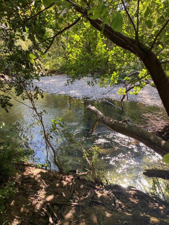 I början finns några picknickbord, och om man fortsätter finns det flera fina platser att sitta på flodkanten. Floden är kall eftersom den kommer uppifrån bergen, men sommartid finns det flera ställen där man kan bada.