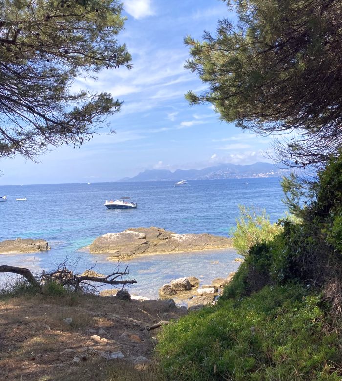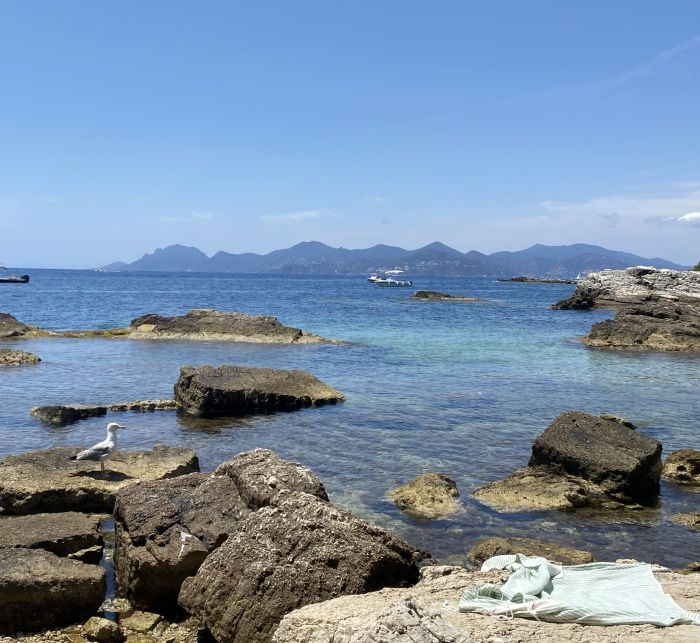 Går man tvärsöver ön kommer man till den kant som vetter mot den mindre ön – Ile Saint-Honorat. Mellan öarna brukar havet vara lugnt och det är en populär plats för de som är ute med båten. Stranden här är klippig, men med flera fina vikar och platser nere vid havet som passar perfekt för picknick. För lite större barn är det ett perfekt ställe att klättra omkring på klipporna och leta efter krabbor, snäckor och annat, eller bara kasta sig rakt i det turkosa havet. Orkar man ta med snorkel eller dykarmask finns det mycket att upptäcka.