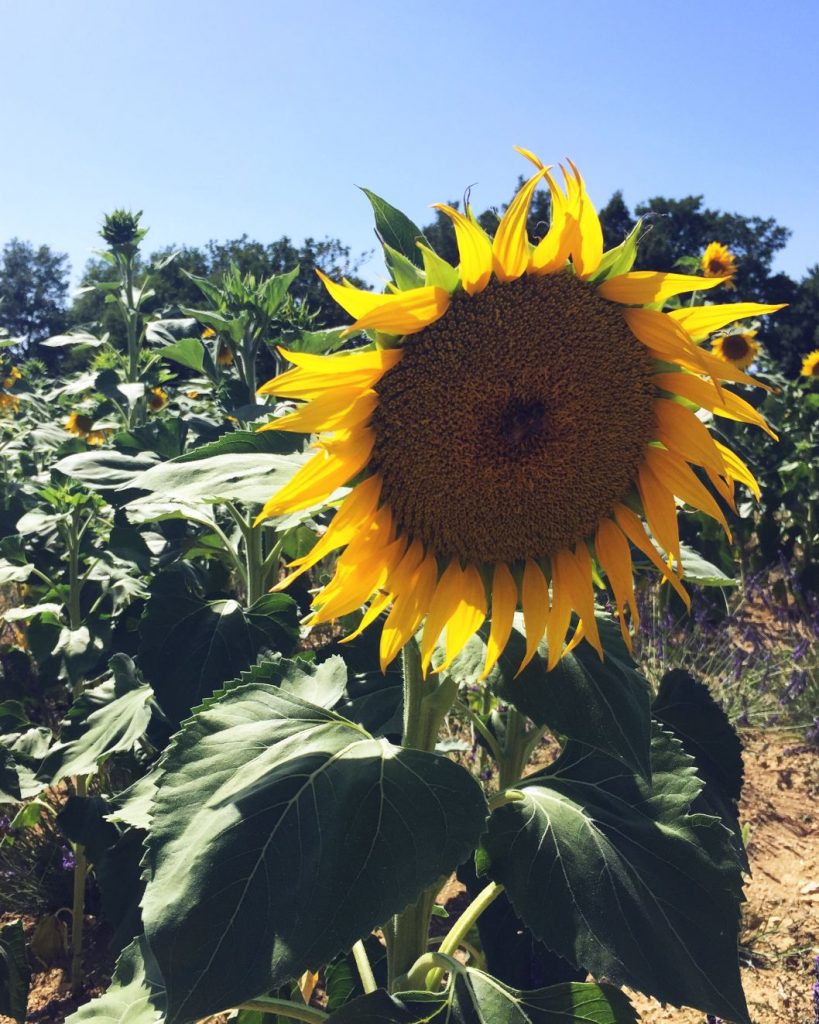 Förutom lavendel finns det fält med solrosor som sträcker sig så långt ögat kan nå.
