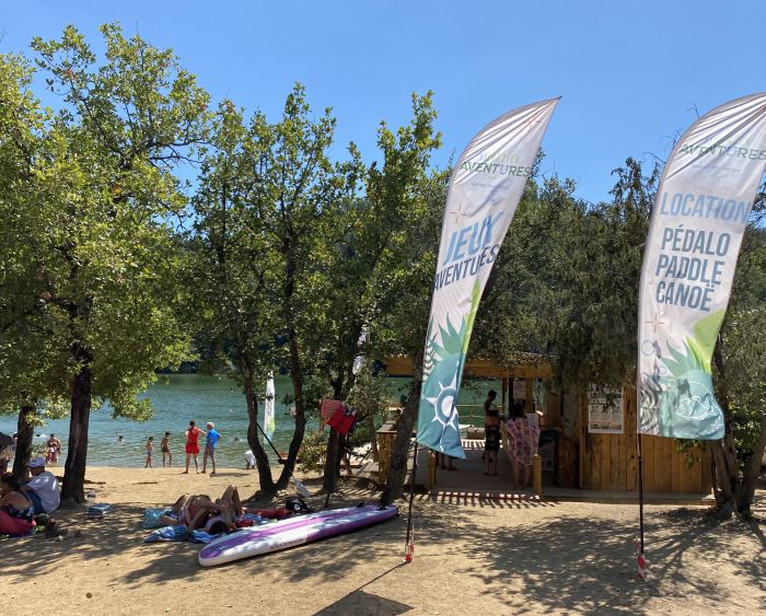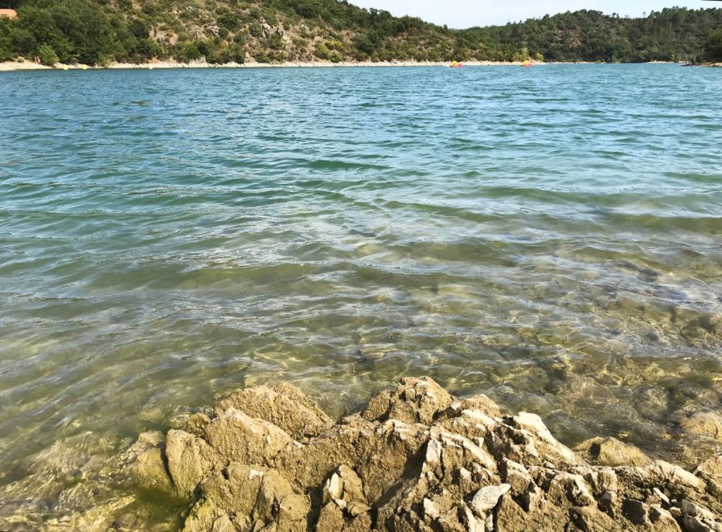 Vi har stannat på lite olika ställen, både på stränder med lite servering och toaletter, och bara följt stigarna ned till sjön. En favorit är stranden vid Saint Cassien Aventures där det finns både toaletter, servering och uthyrning av båtar och annan utrustning. Det är ett bra val när man har små barn och vill ha bekvämligheter och glasskiosk nära eller större barn som gärna vill hyra trampbåtar med rutschkana eller kanot.