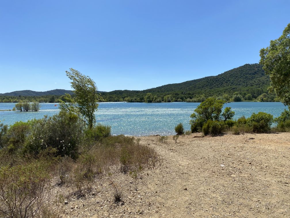 Liksom den större Lac de Sainte Croix är Saint Cassien en konstgjord sjö och vattnet är ofta lysande blått på avstånd. När man kommer närmare är det tyvärr inte lika tydligt, utan lite mer grumligt, men det är ändå häftigt.