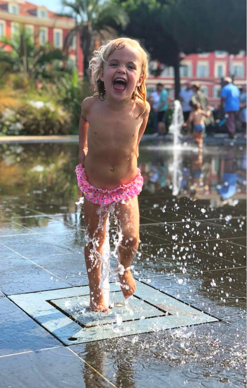 - 			Lekfontänen vid Place Massena i NiceOm man bor i Nice är det svårt att missa den roliga lekfontänen i det som kallas Coulée Verte – den gröna korridoren – alldeles bredvid Place Massena, och kommer man på besök med småbarn måste man helt enkelt gå dit. Det är mitt i centrum, alldeles ovanför Gamla Stan, och bara någon minut från stranden. Fontänen är lika enkel som den är fantastisk. Det är helt enkelt en stor yta med munstycken placerade med jämna mellanrum i marken som sprutar upp vatten och ånga till alla barns stora förtjusning. Sommartid är det fullt av barn i alla åldrar som roar sig kungligt. Det är ingen entré och öppet för…