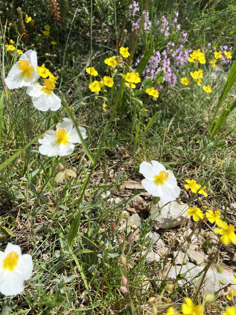Naturen är inte helt olik den svenska – vi såg flera blommor vi kände igen, så som kärringtand, smörblommor (det var första gången jag har sett det här nere), rosor och geranium, samt ett gäng som vi inte kunde namnet på. Där fanns även tallar, även om deras stammar var långt ifrån de ståtliga värmländska tallar som vi är vana. Fransk lavendel och timjan växte förstås också mellan klipporna.